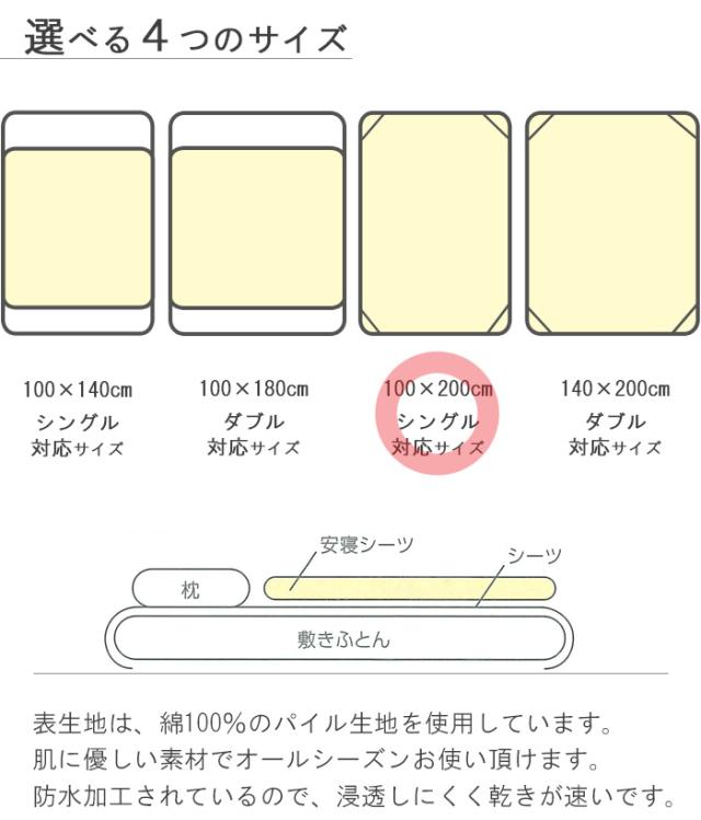 防水加工されているため浸透しにくく、不安な夜も安心のシーツです。