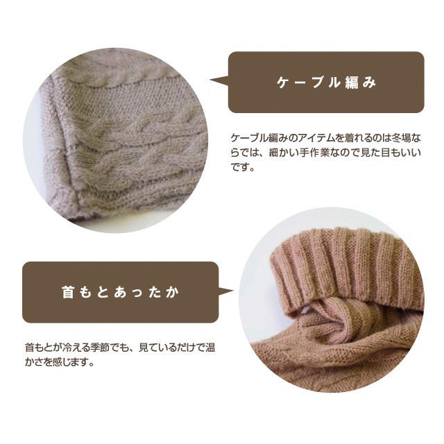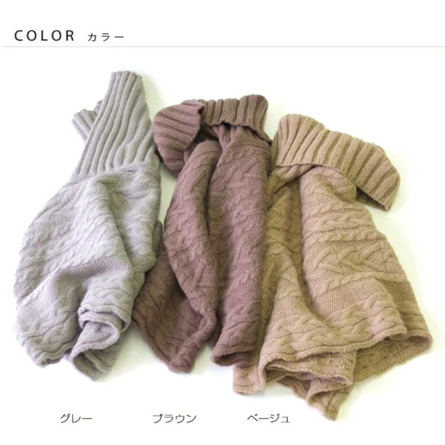 落ち着いた風合いなので、どんなコーディネイトにもあわせることが出来ます。 ケーブル編みのアイテムを着れるのは冬場ならでは・・見ているだけで温かさを感じます。 ニットは薄めで軽いので シンプルなニットや綿の白シャツに合わせれば 大人っぽく女性らしい印象になりますよ。 |