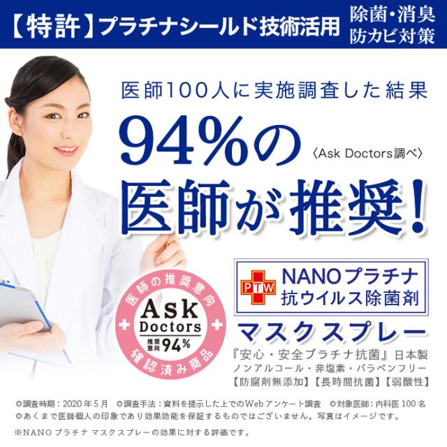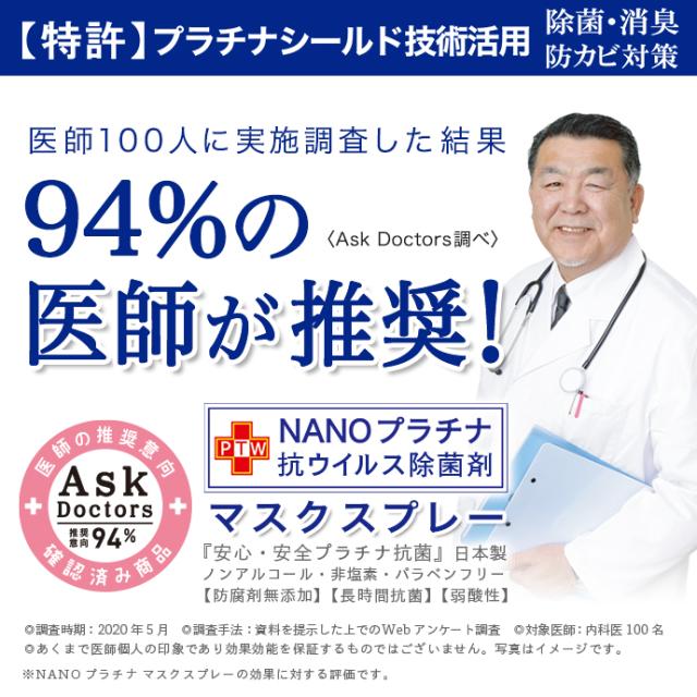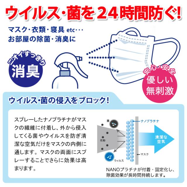 日本製 マスク スプレー 除菌 NANOプラチナ 50ml A 長時間除菌 マスク 消臭 抗菌 繰り返し使用できる マスクスプレー 送料無料