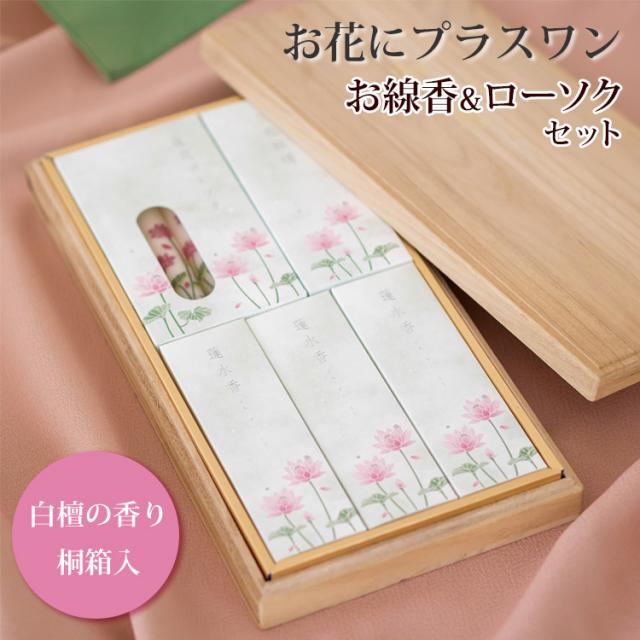 【お花にプラスワン】 蓮水香 白檀の香り 蝋燭セット【桐箱入り】※ローソクと線香セットのみの購入はできません※