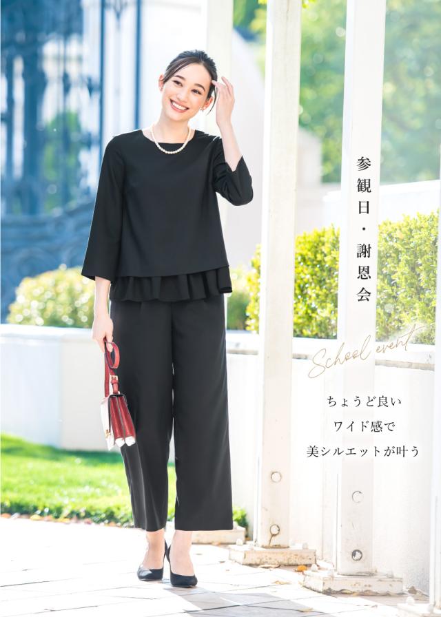 日本製生地 スーツ レディース セレモニースーツ セットアップ フォーマル ママ セレモニー パンツ パンツスーツ ママスーツ 入学式 卒業式 洗える 半袖 ワイド ビジネス 通勤 七五三