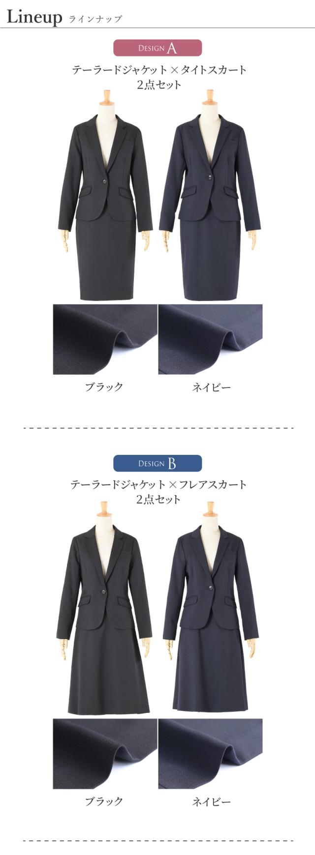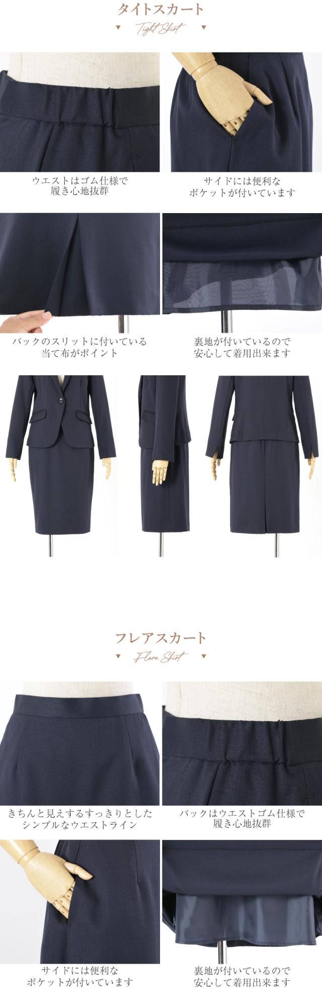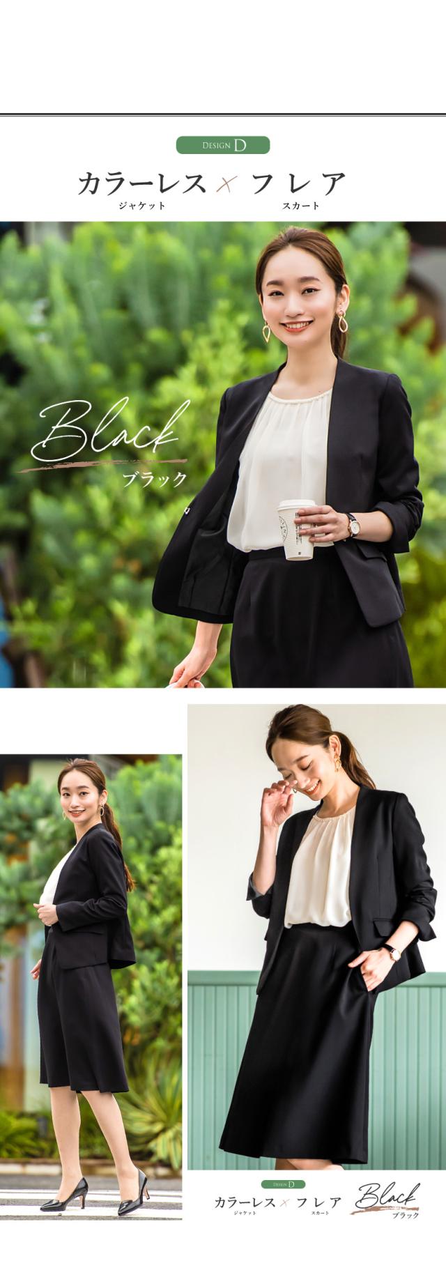 スーツ レディース ストレッチ 長袖 洗える テーラード カラーレス スカート フレア タイト 半裏地 オフィス ビジネス 通勤 OL おしゃれ 黒 ネイビー 夏 大きいサイズ 小さいサイズ
