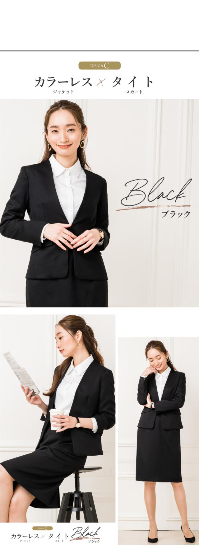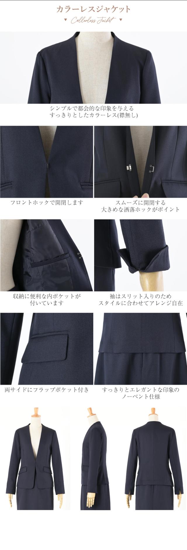 スーツ レディース ストレッチ 長袖 洗える テーラード カラーレス スカート フレア タイト 半裏地 オフィス ビジネス 通勤 OL おしゃれ 黒 ネイビー 入学式 卒業式 セレモニー 春 夏 秋 冬 大きいサイズ 小さいサイズ 試着チケット対象