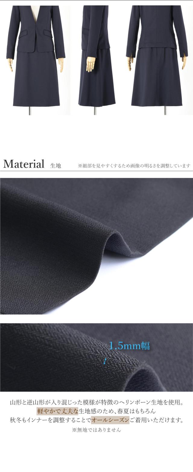 ご家庭で洗える!フォーマル&キャリアスカートスーツ。ジャケットの形は、テーラードとカラーレスの2タイプがございます。さらに、スカートはベーシックなタイトと女性らしいフレアの2種類ご用意しました。計4パターンからお好みのデザインをお選びいただけます。表地は、上品な印象で高級スーツに使われるヘリンボーン生地を使用したスカートスーツです。動きを邪魔しない、耐久性に優れた柔らかい素材。ナチュラルストレッチ素材を使用しています。ご家庭でお洗濯が可能なのもうれしいポイント。家計にも優しいご家庭で洗えるスカートスーツ!汗をかいてもすぐに洗えるからヘビロテしたいスーツです。美しいシルエットと快適な着心地で、クールなセレモニー&キャリアスタイルが決まります。様々なシーンに対応可能で、スタイルアップを実現するスカートスーツです。
