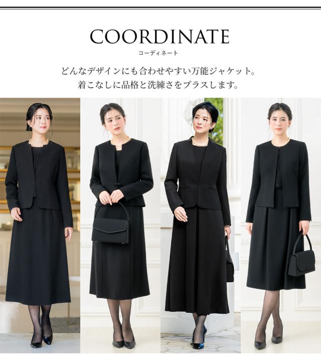 日本製生地 ジャケット 喪服 レディース 洗える 春 秋 冬 アウター フォーマル セレモニー 女性 葬式 通夜 法事 法要 冠婚葬祭 礼服 上品 黒 ブラック 大きいサイズ ブラックフォーマル