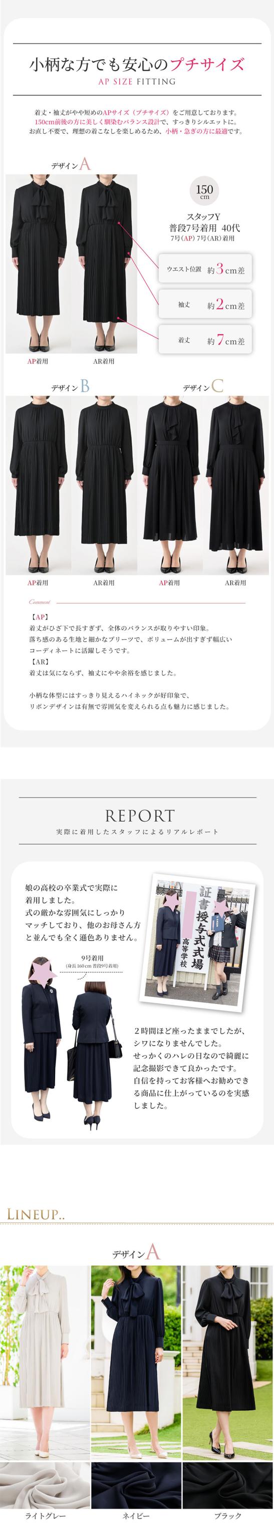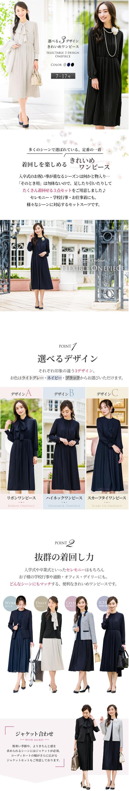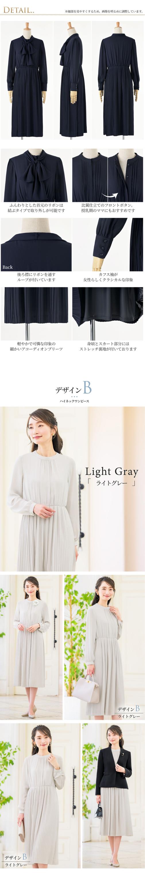 入学式のお祝い事が重なるシーズンは何かと物入り… 「そのとき用」は勿体ないので、足したり引いたりしてたくさん着回せるワンピースをご用意しました♪ 着回しを楽しめるきれいめワンピースで、フォーマルからカジュアルシーンまで幅広く対応できる定番の一着です。 【選べるデザイン】 ワンピースは印象の異なる3つのデザインをご用意。 カラーはライトグレー、ネイビー、ブラックの3色からお選びいただけます。 Aデザイン:リボンの取り外しが可能な2way仕様で、シーンに合わせて印象を変えられるデザイン。 前開きタイプのため着脱も簡単で、授乳期のママにもおすすめです。 プリーツスカートが上品に揺れ、清楚な印象を引き立てます。 Bデザイン:首元に寄せたギャザーがほどよい立体感を生み、シンプルながらも上品な印象に。 袖口のパール調ボタンが手元を華やかに引き立て、細部まで女性らしい仕上がりです。 プリーツスカートが縦のラインを強調し、すっきりと見えるシルエットです。 Cデザイン:胸元のスカーフタイがほどよい動きを添え、顔まわりを華やかに演出。 ウエスト切替が自然なメリハリを生み、スタイルアップが叶うデザインです。 袖口にはパール調ボタンをあしらい、上品で女性らしい印象に仕上げました。 スカート部分は柔らかに広がるフレアシルエットで、エレガントな印象を与えます。 どちらのデザインも生地は共通で、動いた時の揺れ感が上品な軽い素材を使用。 少し長めのレングスで座った時も膝が出ず好印象です◎ 【抜群の着回し力】 入学式や卒業式といったセレモニーはもちろん、お子様の学校行事や通勤、オフィス・デイリー・ディナーにも。 どんなシーンにもマッチして1着あると便利なワンピーススーツです。 【着心地よく美シルエット】 長時間でもリラックスできるよう、ワンピースのウエストをゴム仕様にして楽な着心地に。 高めの切り替えなため着やせ効果も期待できます◎ 妊娠初期や産後のママにもおすすめ♪ 【ウォッシャブルワンピース】 ご家庭で手軽に洗えるためいつも清潔にご着用いただけます。 クリーニング代も抑えられて経済的。 【ジャケットセットもご用意】 肌寒い季節や、よりきちんと感を求められるシーンにはジャケットが必須。 コーディネートの幅がさらに広がるジャケットセットもご用意しております。 是非ご利用くださいませ。 |