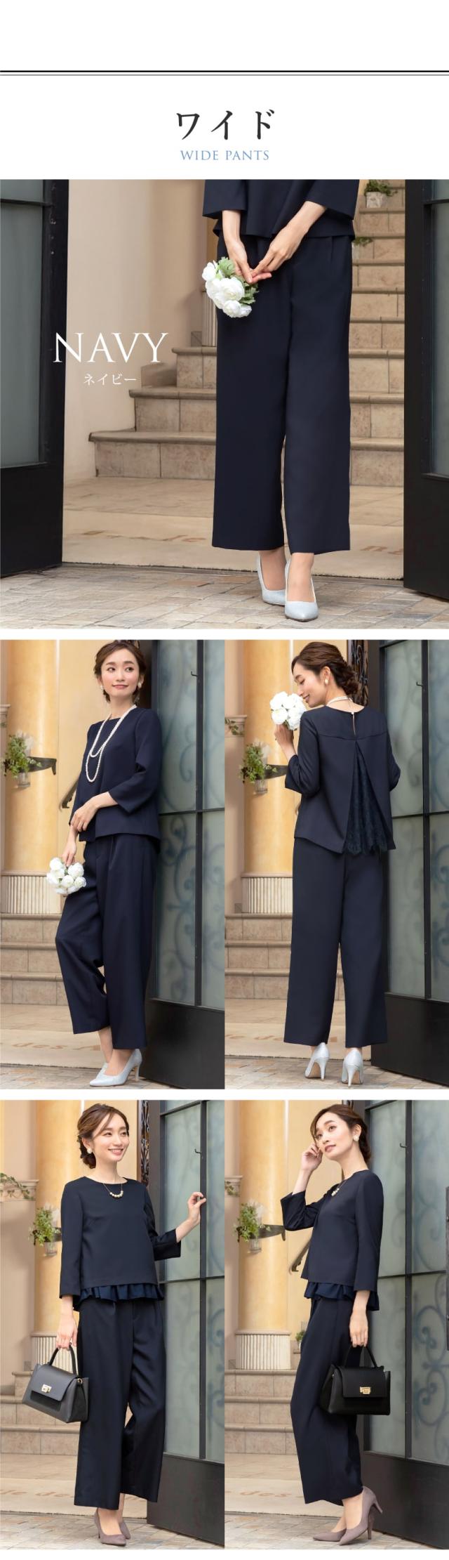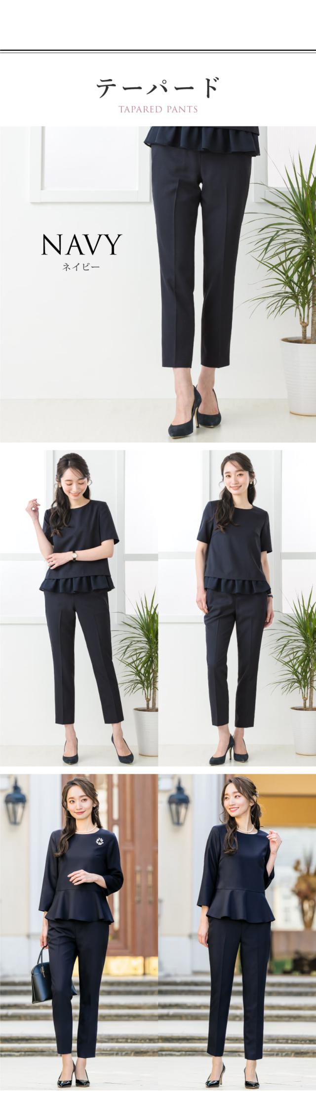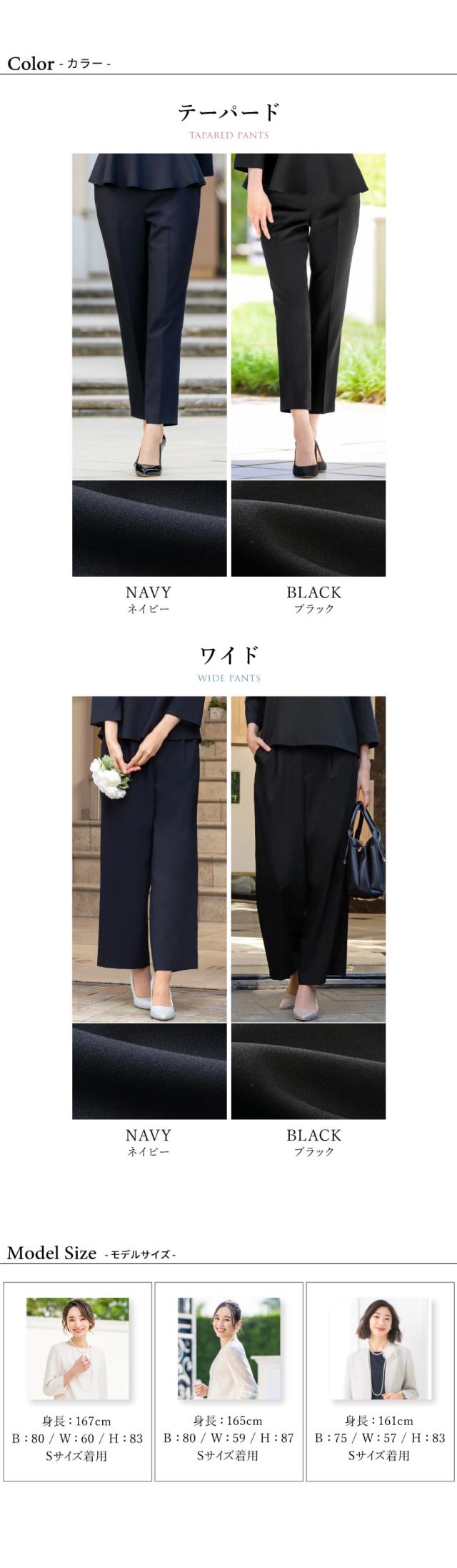 日本製生地 テーパード ワイド パンツ ネイビー ブラック 単品 レディース セレモニー スーツ セットアップ 対応 きれいめ ママスーツ 入学式 卒業式 洗える ビジネス 通勤 七五三 メール便送料無料 1/1
