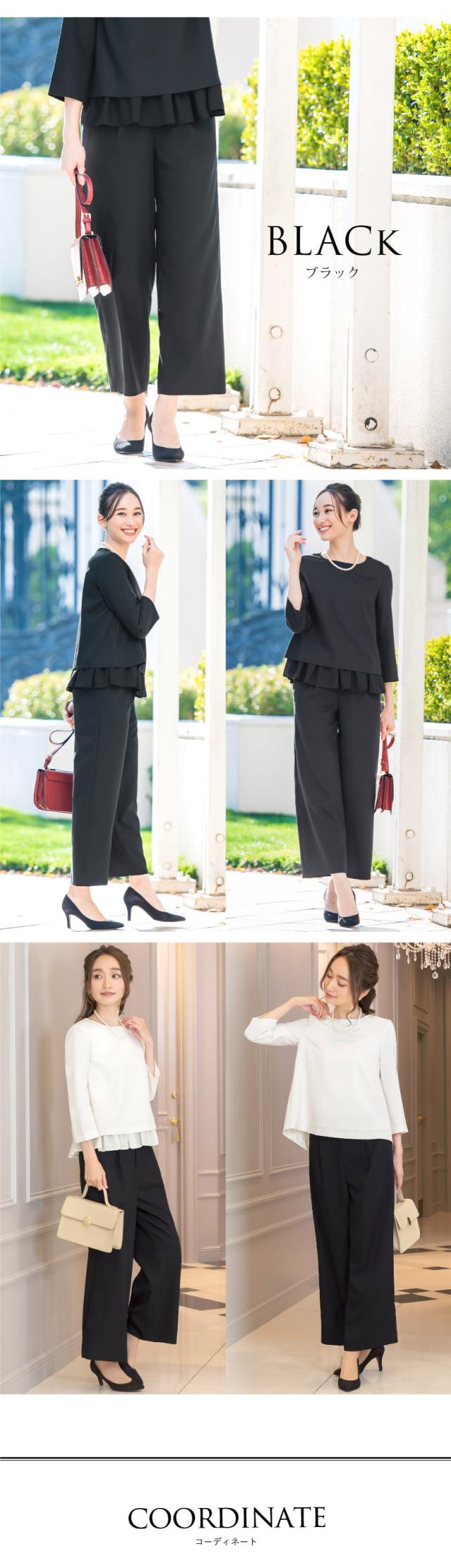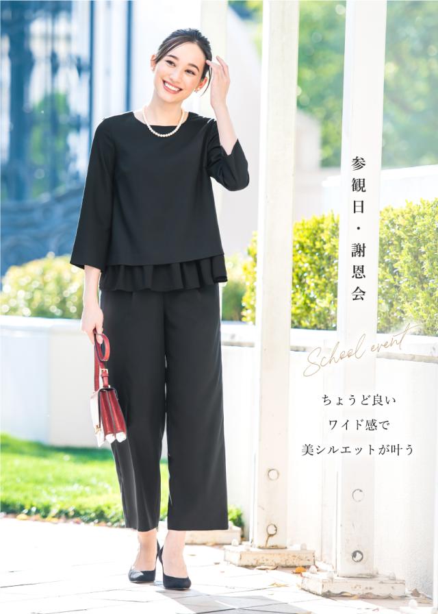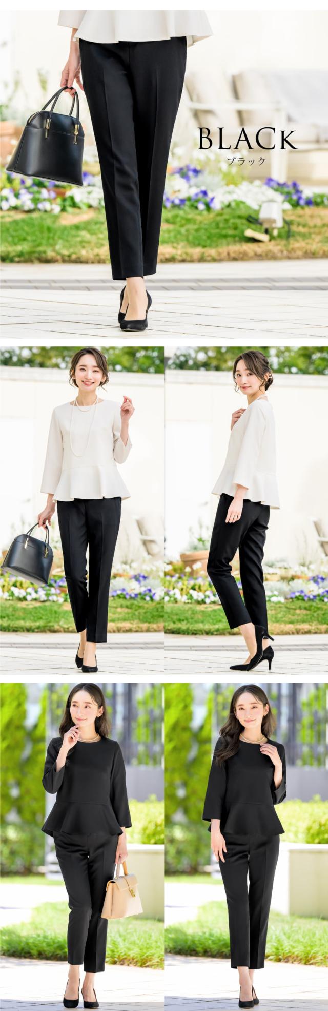日本製生地 テーパード ワイド パンツ ネイビー ブラック 単品 レディース セレモニー スーツ セットアップ 対応 きれいめ ママスーツ 入学式 卒業式 洗える ビジネス 通勤 七五三 メール便送料無料 1/1