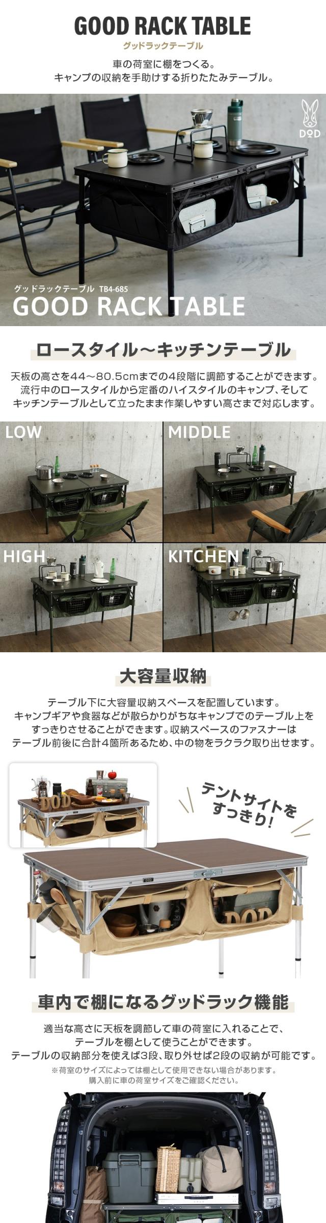 DOD テーブル グッドラックテーブル TB4-685-KH dod アウトドア キャンプ 高さ調整 車載棚 30kg
