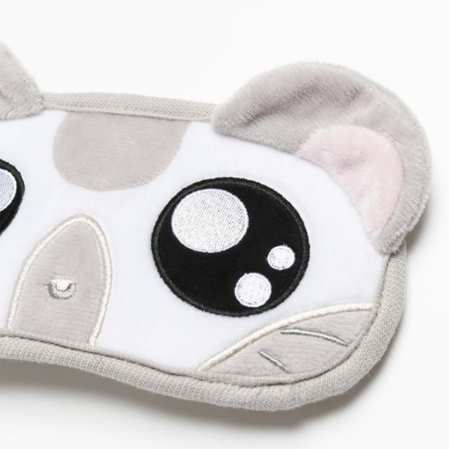 こちらは、滑らかさと柔らかさがあり肌触りの良い素材を使用し、グレーを基調としたこうしくんの表情全体を落とし込んだアイマスク。目や耳等、刺繍使いにすることで立体感がありリアルな雰囲気に仕上がっています。部屋の中やオフィス等でファッションとしても取り入れられるのはもちろん、持ち運びに便利な可愛いパッケージ付きで旅行や長距離移動のお供にも最適。