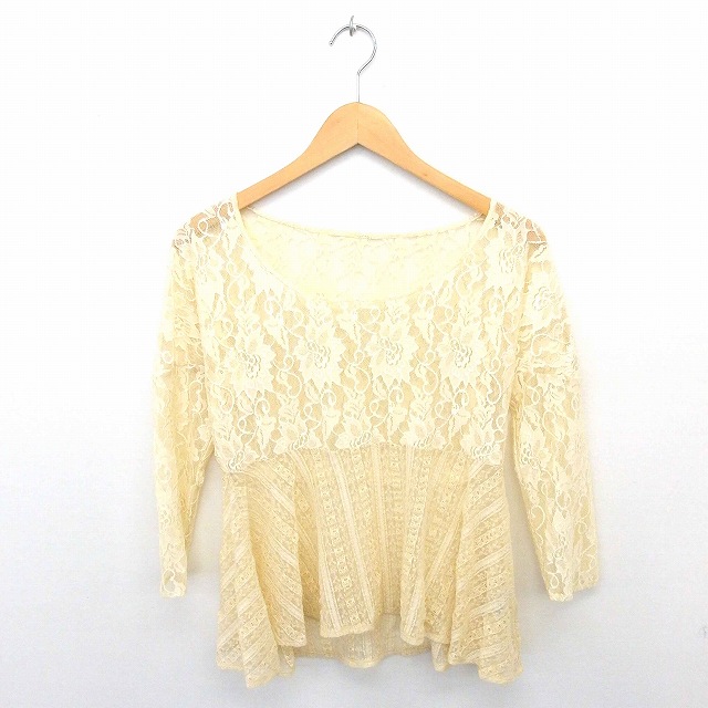 【中古】ミスティック mystic カットソー ブラウス プルオーバー 総レース 透け感 長袖 薄茶 ベージュ /TT3
