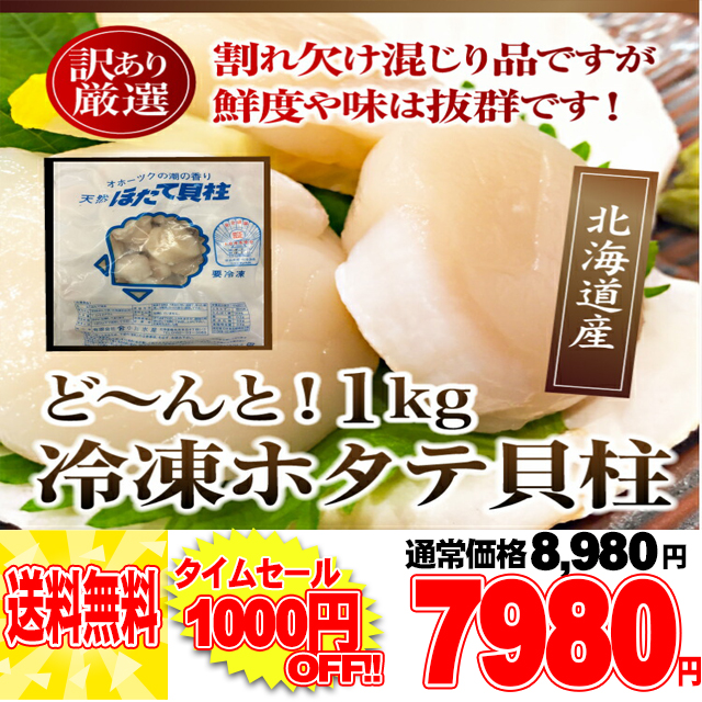 【訳あり】お刺身用ホタテ貝柱1kg サラダやバター焼きにも♪/生食用【帆立/ほたて】/冷凍A pre