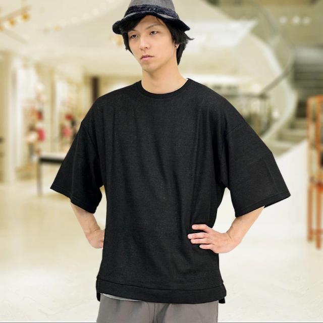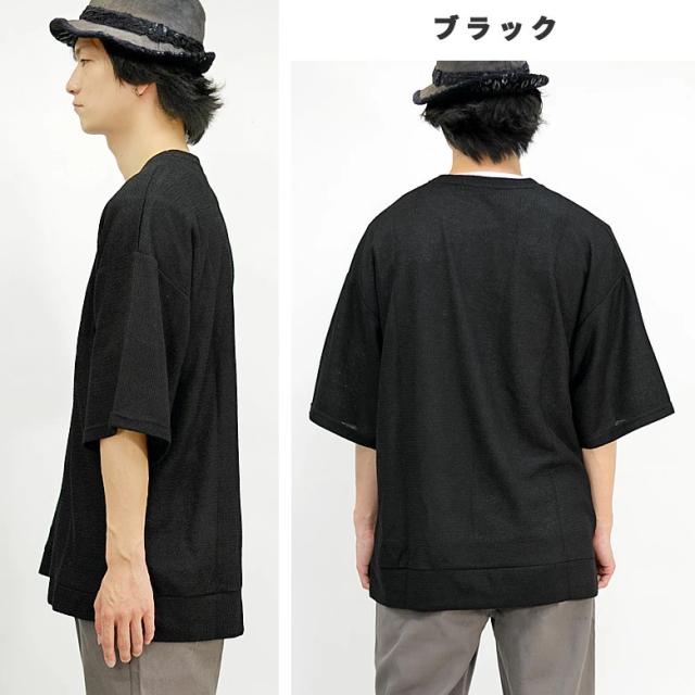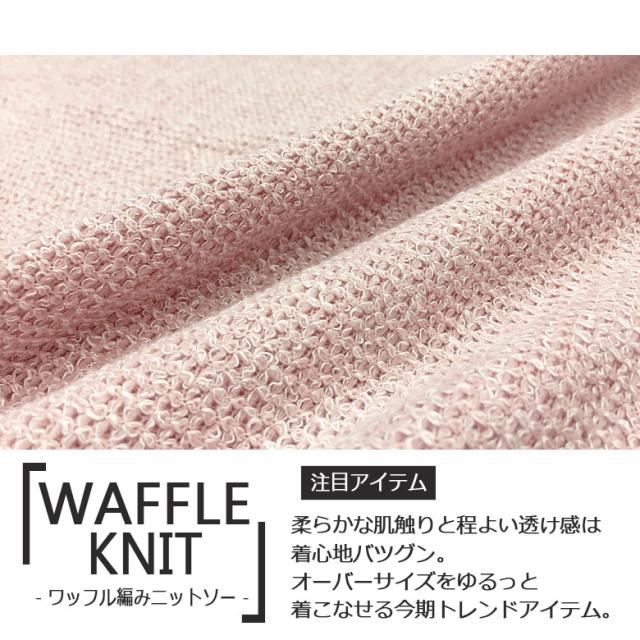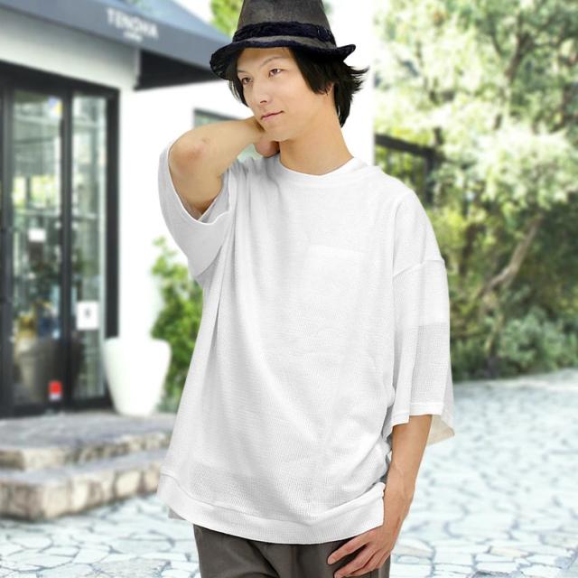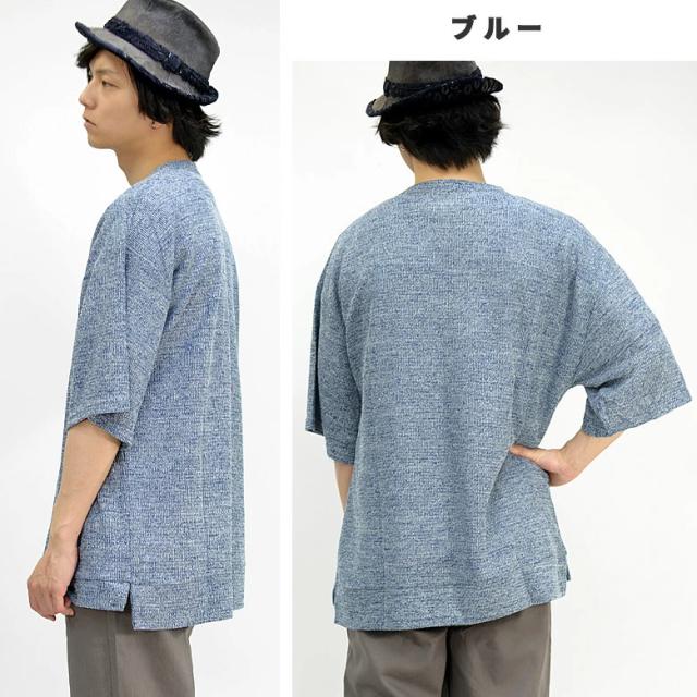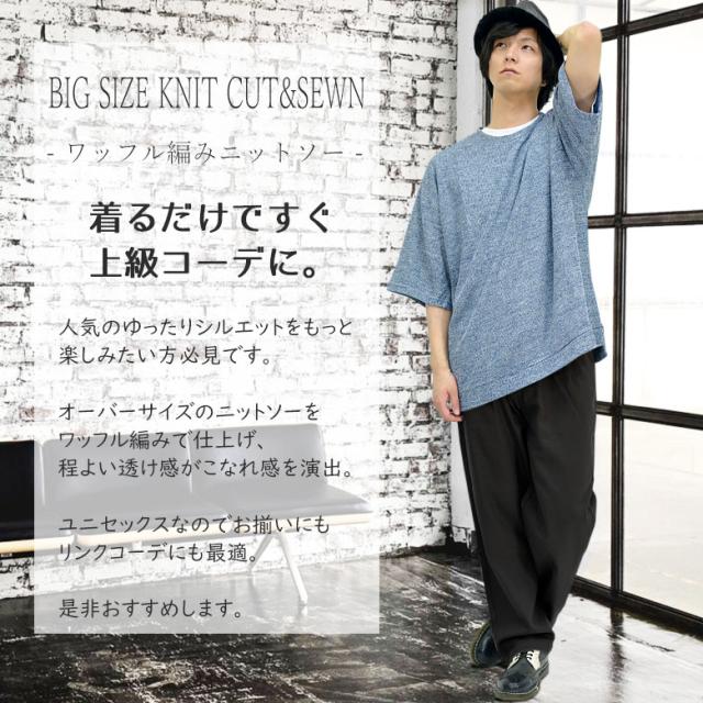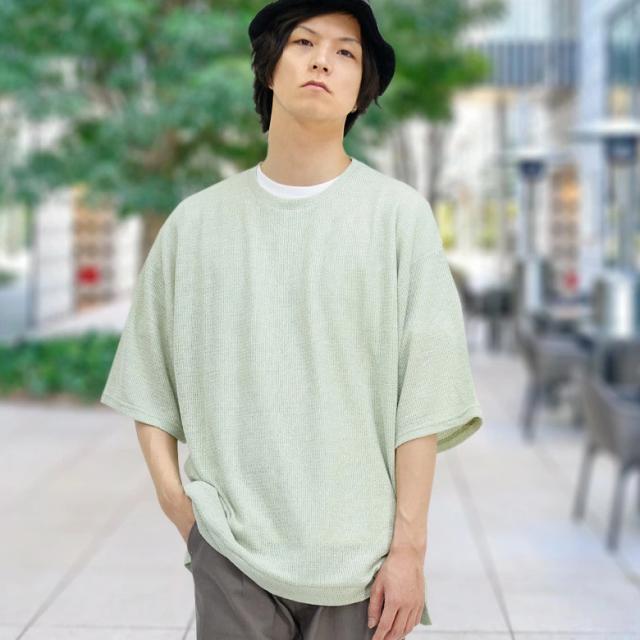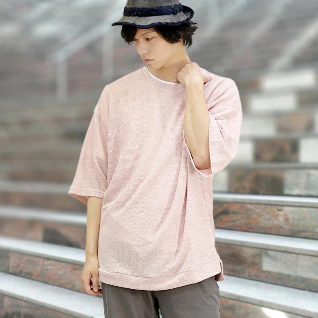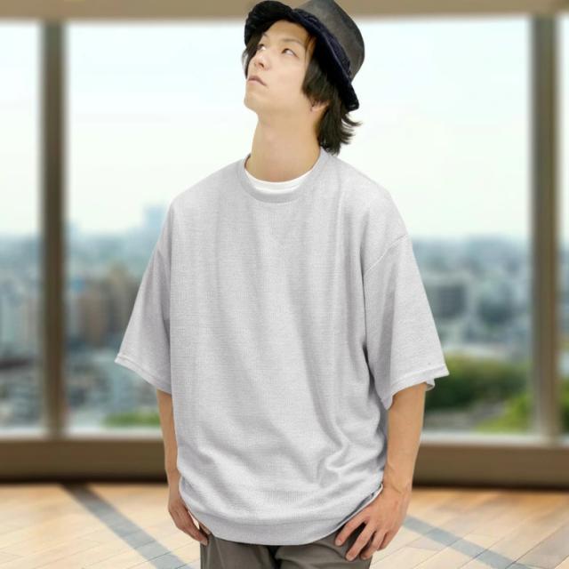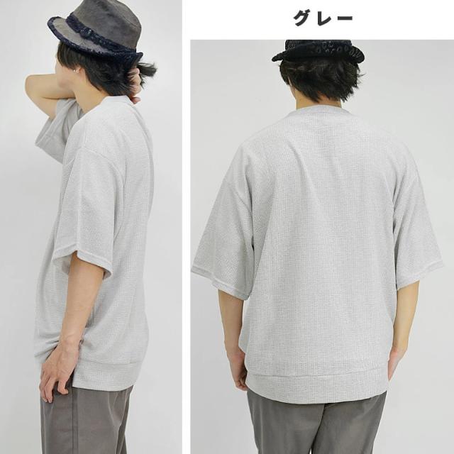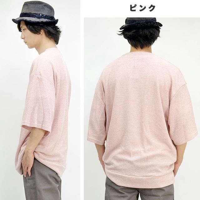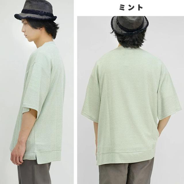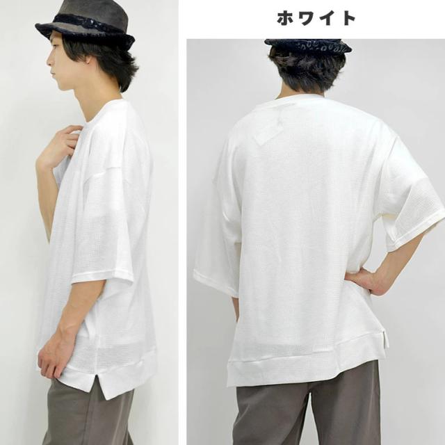 【閉店セール】ビッグサイズ ワッフル半袖ニットソー メンズカットソー ワッフルニットソー サマーニット かわいい オーバーサイズ ビッグサイズ rv7402 ユニセックス メンズ 半袖Tシャツ お揃い ペアルック リンクコーデ 無地 丸首 クルーネック サイドスリット