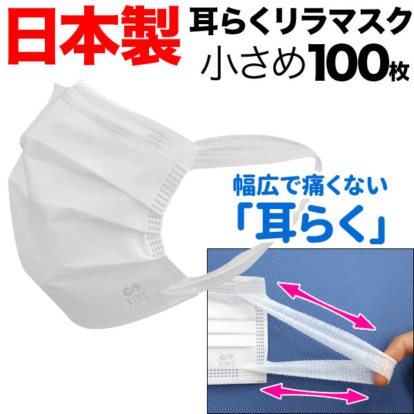 マスク 不織布 国産 日本製 100枚 小さめ 子供 使い捨て 3層フィルター 耳らくリラマスク[在庫限り]