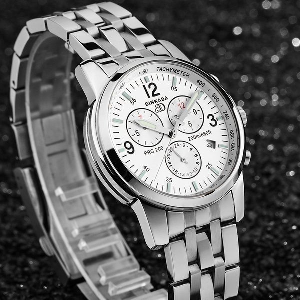 腕時計 メンズ 防水 高級 Binkada クロノグラフ ラグジュアリー腕時計(シルバーホワイト)