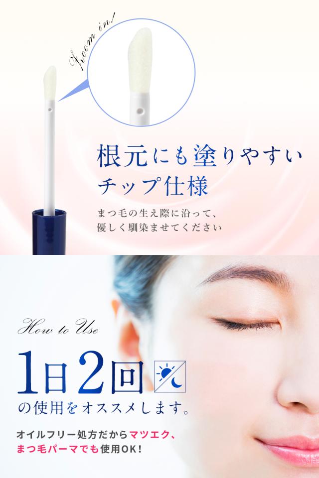◆1日2回(朝晩)、もしくは1日1回(晩)目安に、洗顔後の清潔なまつげ、まつげエクステ全体に、根元から毛先まで塗布します。目に入らないように充分にご注意ください。