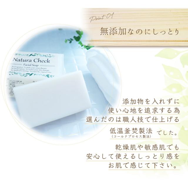 ナチュラチェック 洗顔せっけん 85g 無添加 毛穴の黒ずみ 毛穴の開き 敏感肌 乾燥肌 新生児 乾癬肌 石鹸 石けん コールドプロセス 低温釜焚
