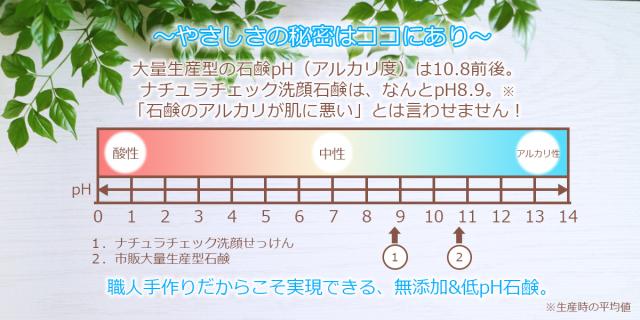 こちらの 洗顔せっけん は 低温釜焚 やこだわり製法 によりpH9.2(平均)と、