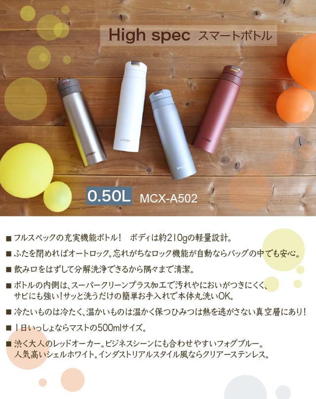 水筒 ステンレスボトル 500ml ワンプッシュ コンパクト 軽量 保温 保冷 直飲み MCX-A502