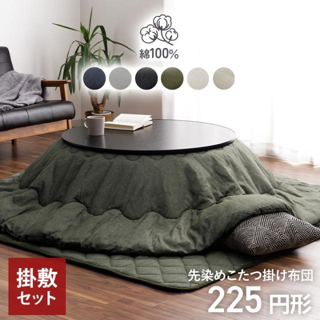 こたつ布団 セット 円形 大判 2点 掛敷セット 綿 100% 「 先染めこたつ掛敷布団2点セット 」 225cm円形 ( 対応こたつ台: 90cm円形 110cm円形 ) 洗える 薄掛け こたつ おしゃれ 北欧 コタツ 丸 省エネ 節電対策 リバーシブル