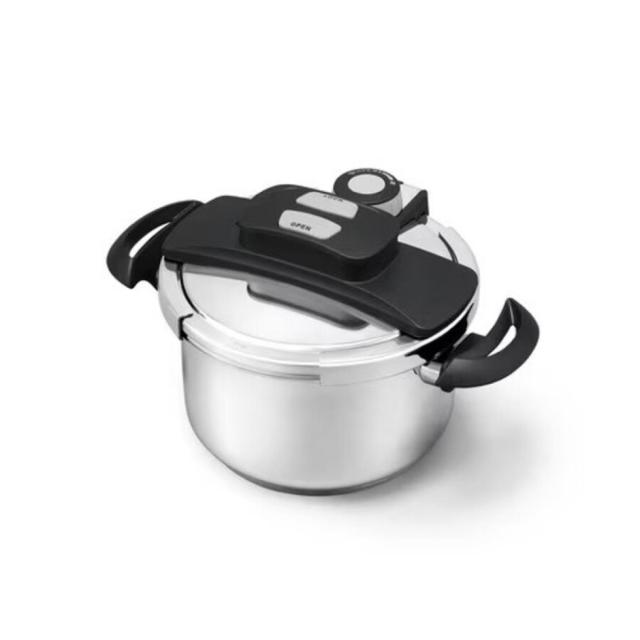 料理に応じて低圧・高圧の切り替えが簡単にできるダイアル式の両手圧力鍋です。