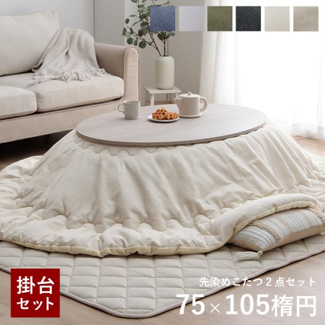 こたつ セット 楕円形 テーブル 布団 2点セット 「 薄掛先染めこたつ 掛台2点セット 」 台:75×105cm楕円形 綿 100% 洗える こたつ布団 こたつテーブル おしゃれ 北欧 コタツ 薄掛け布団 薄手 節電 省エネ かわいい