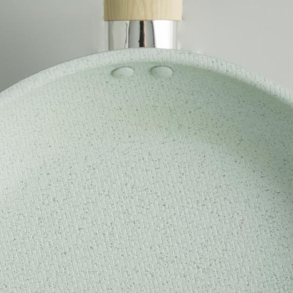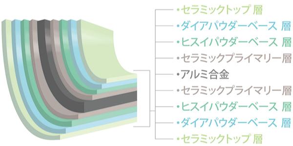 | 材質 | 本体:アルミニウム合金(内面・外面:セラミック塗膜加工)(翡翠石、ダイヤモンド粉末含有) 底部:ステンレス鋼 ハンドル:フェノール樹脂 |