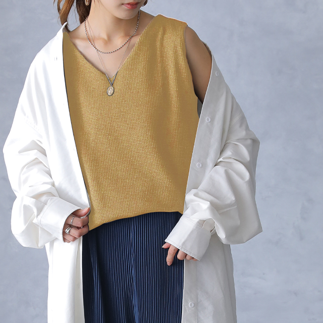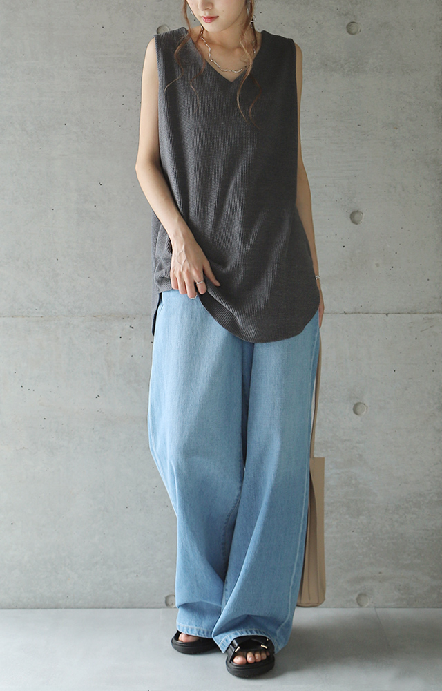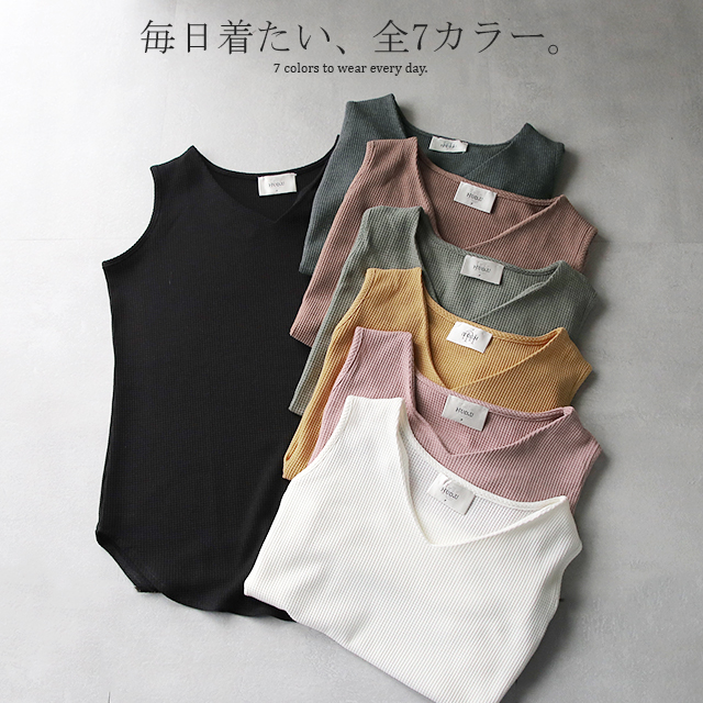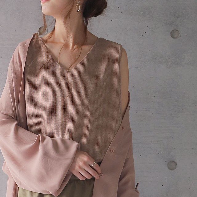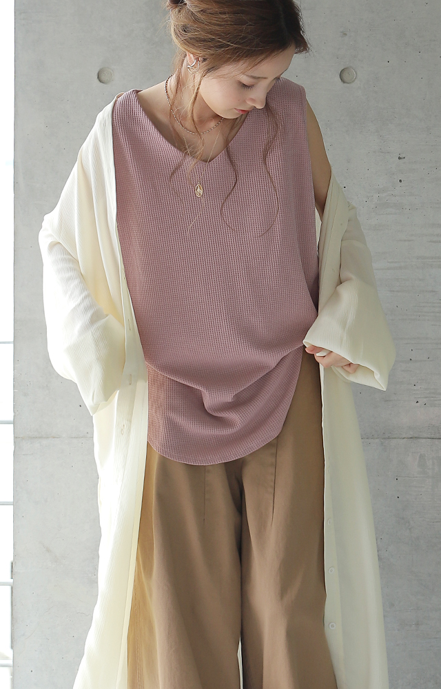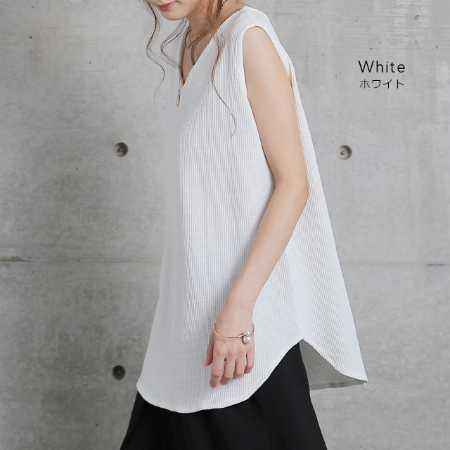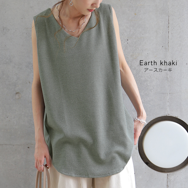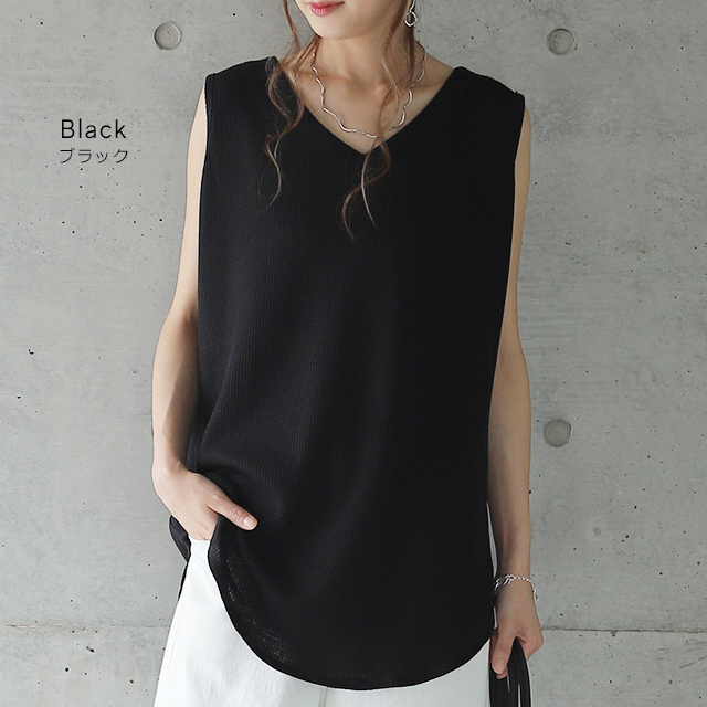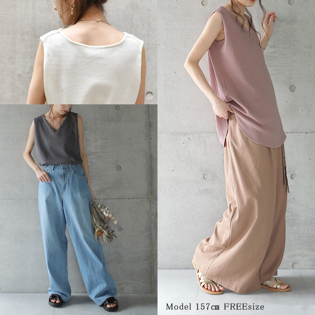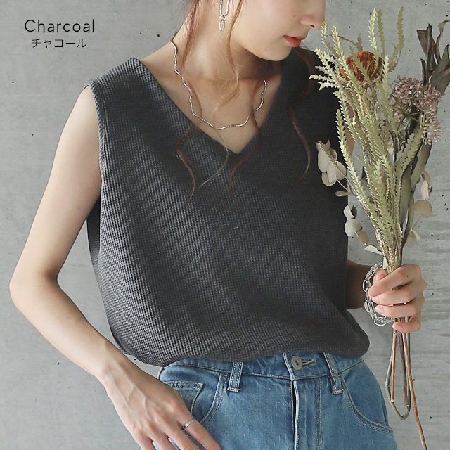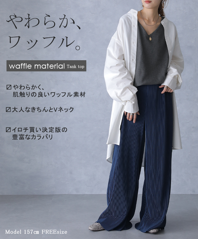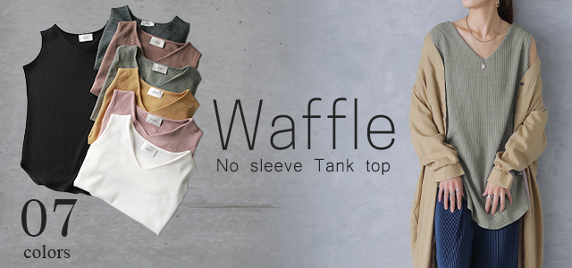 スタンダードで着回し力の高いワッフルタンクトップ。