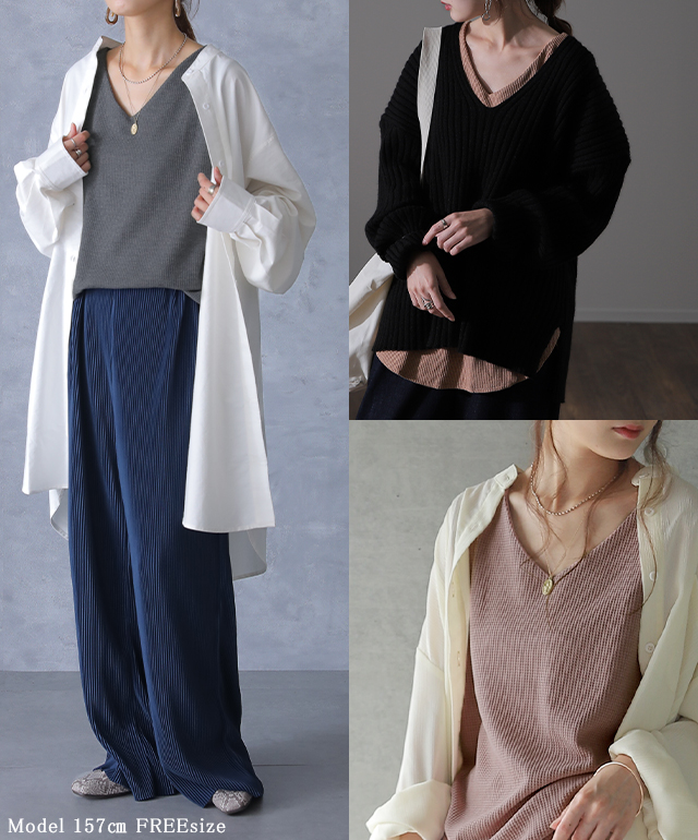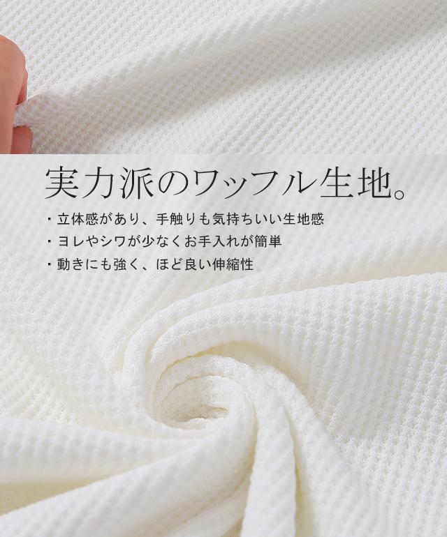- ワッフルの素材は、よかったのですが モデルさんが着た感じで選ぶと失敗しますね。 身長も違うので私には、思っていたよりは、 短めだったかな。インナーとしては いいと思います。