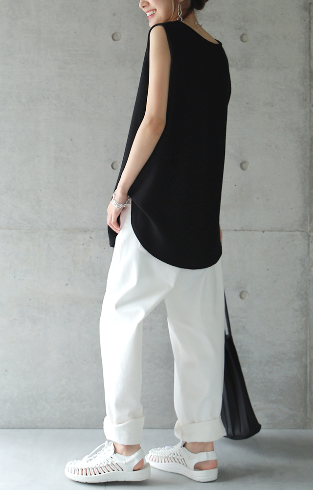 裾がラウンドデザインなので単品使いとしてはもちろん、レイヤードとしてもオススメです。