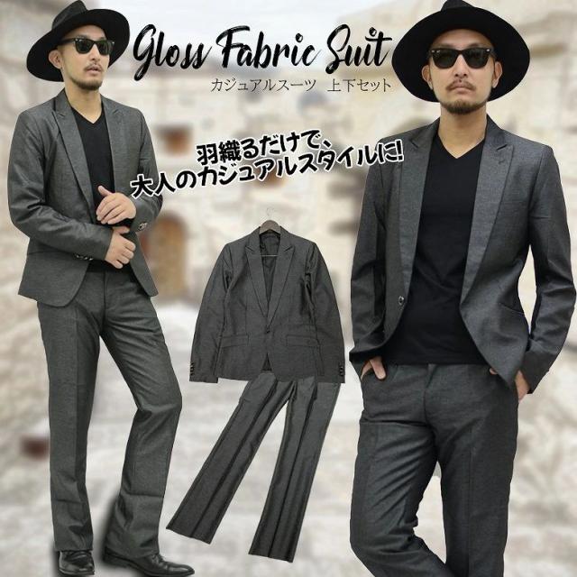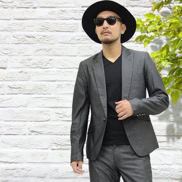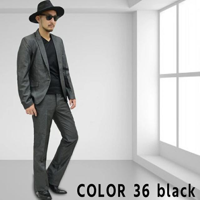 【閉店セール】カジュアルスーツ セットアップスーツ 単体でも使えるお得なSET UP素材感で大人の余裕を魅せる!013S6392-36メンズセットアップ カジュアルスーツ1Bテーラードジャケット JK ジャケットパンツSET ブラック 結婚式 2次会