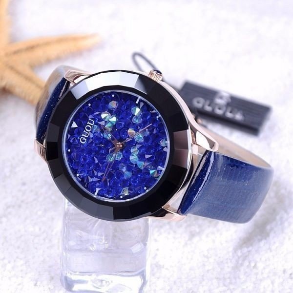 腕時計 レディース 海外人気ブランド GUOU キラキラ カラフル ジュエリー レザー 革バンド