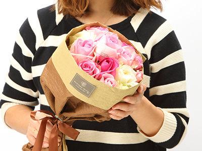バラの花びらにお好きなメッセージを入れてお届けします。誕生日、記念日、プロポーズの場面で・・・一生忘れられないプレゼントになるでしょう。丈の短いカジュアルな花束は、可愛らしい印象です。