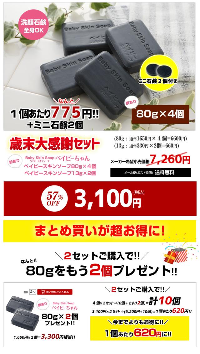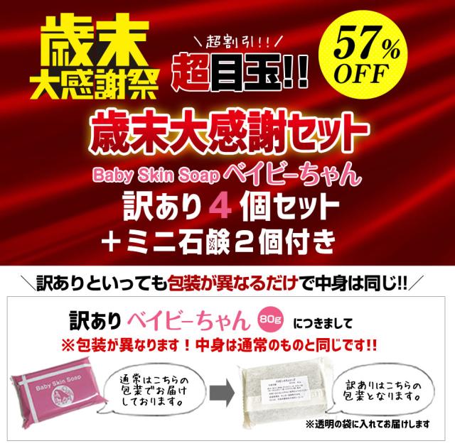 【おまけ増量】【訳あり】\57%OFF/ 超目玉 ベイビーちゃん歳末大感謝セット【訳あり石鹸80g×4個+ミニ石鹸13gx2個】2セットでもう2個」※【メール便】送料無料 ★ベイビースキンソープ 洗顔 石鹸 毛穴 黒ずみ ニキビ予防 角質 角栓除去 イチゴ鼻 花粉