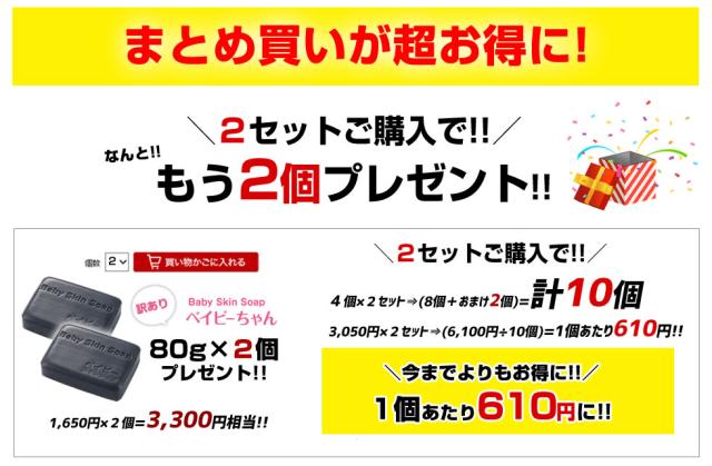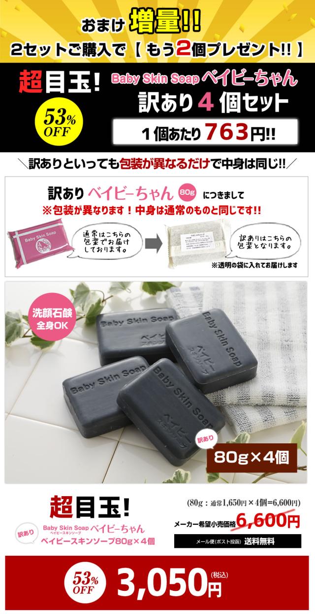 【超目玉】【訳あり】訳あり石鹸4個♪ 総合1位獲得!400万個突破「訳ありベイビーちゃん4個」【2セットでもう2個⇒1個あたり\610円/に!】 【メール便】送料無料 ★ベイビースキンソープ 毛穴 黒ずみ 角栓除去 ニキビ予防