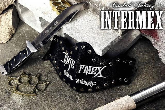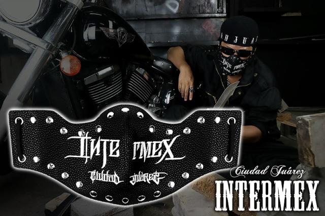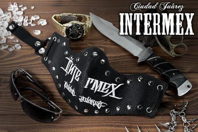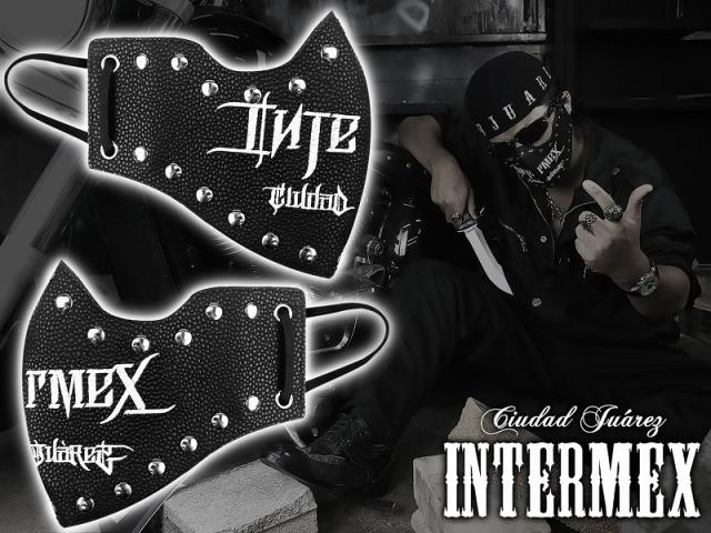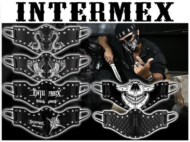 定形外郵便送料無料 カラスマスク フェイスマスク INTERMEX ITM-033 ロゴ 刺繍 黒 白 スタッズ 洗える メンズ オラオラ系 ヤクザ ヤンキー ギャング バイカー フェイクレザー 悪党の店 バースジャパン BIRTHJAPAN
