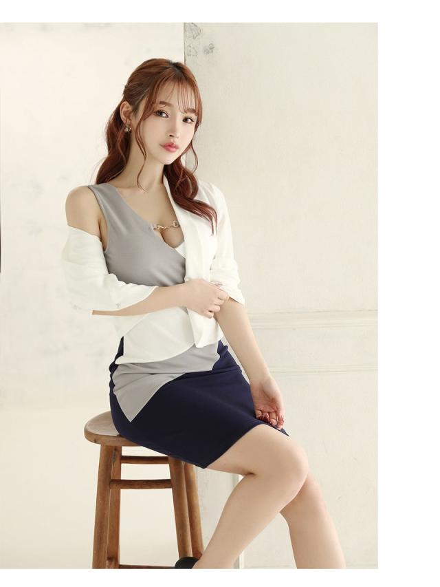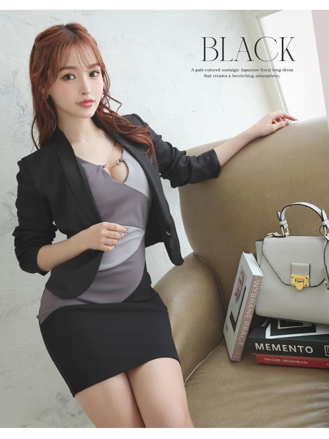 ☆薄手のショート丈ジャケットを脱げばワンピースとしても着れるサマースーツは2wayで気回せるミニ丈タイトキャバワンピ♪
