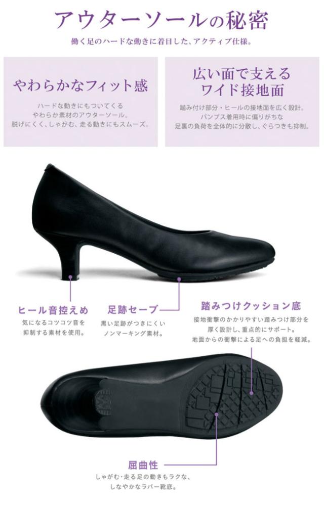 就活生に向けた履き心地ときれい魅せの両方を兼ね備えた黒パンプス