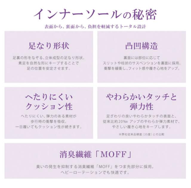 ・踏付部に厚みを持たせ、着地時の衝撃緩衝。