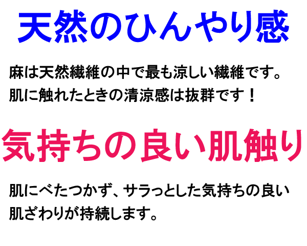 麻は天然繊維の中でもっとも涼しい繊維です。