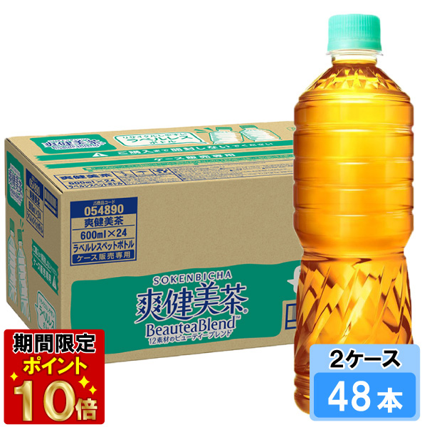 爽健美茶 ラベルレス 600ml 48本 (24本×2ケース) PET そうけん ブレンド茶 安心のメーカー直送 送料無料