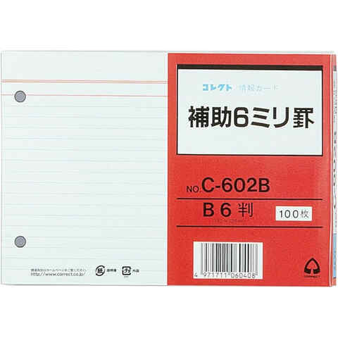 コレクト 情報カード B6 補助 6ミリ罫 2穴 送料無料