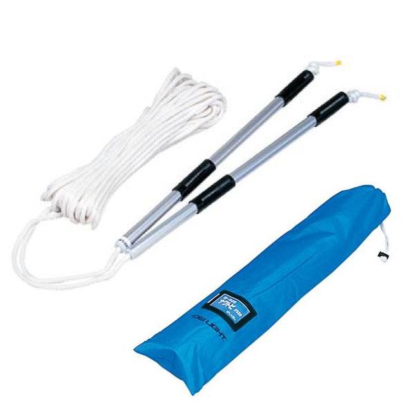 グリップ:アルミ製、ロープ:ポリエチレン金剛打、専用ナイロンケース付、長さ調節可能