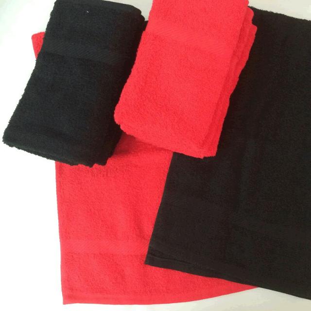 カラフルカラー無地フェイスタオルシリーズの赤と黒のタオルです。