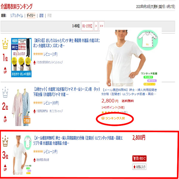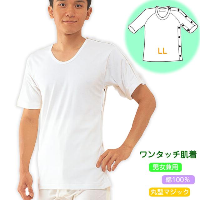 【メール便送料無料】紳士・婦人共用脇開き5分袖(左開き)LL ワンタッチ肌着・高級エジプト綿 介護肌着 介護用品 介護衣料 介護服 高齢者 老人 お年寄り 病院 施設 入院 通院 介護 リハビリ パジャマ 着替え 下着 インナー アンダーウェア 介護用下着 肌着 入院肌着