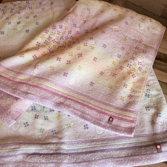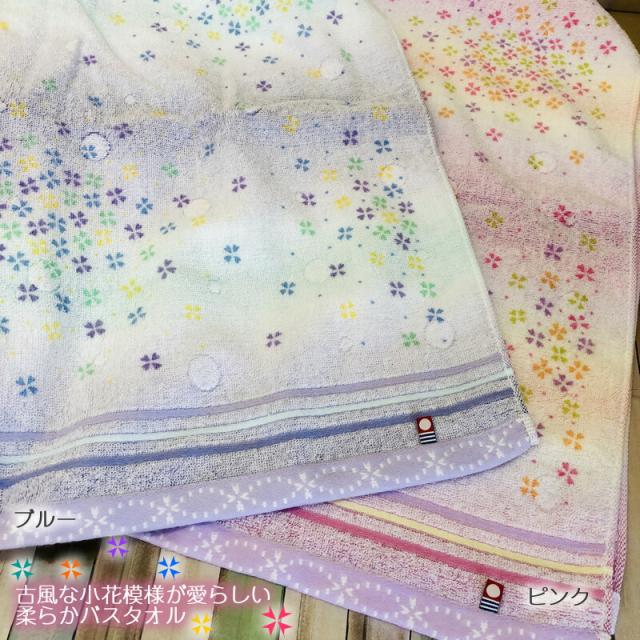 グラデーションカラーに古風な小花 愛らしいデザインのキャンディバスタオル |