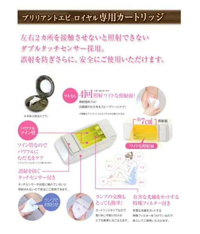 【商品名】ブリリアントエピ ロイヤル用のランプカートリッジ 左右2カ所を接触させないと照射できないダブルタッチセンサー採用。 誤射を防ぎさらに、安全にご使用いただけます。