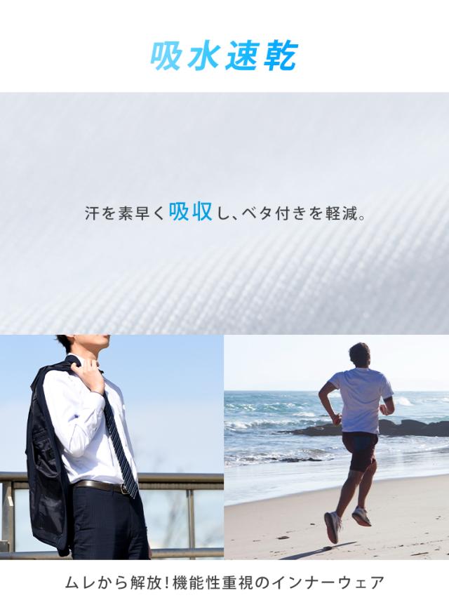 汗を素早く吸収してベタつきを軽減、機能性重視のインナーウェアです。