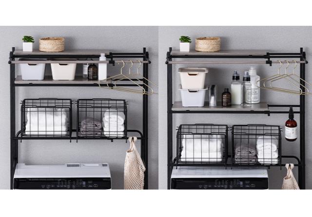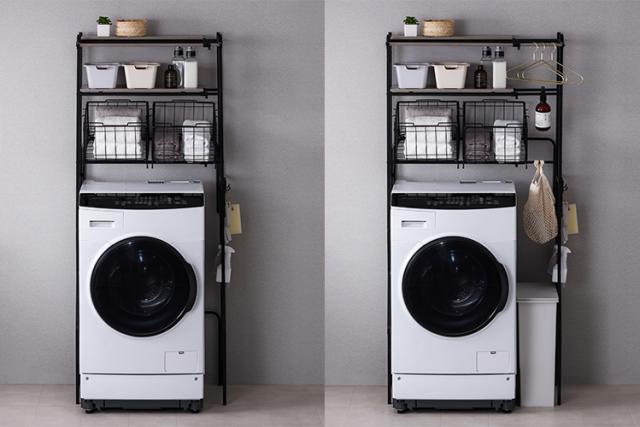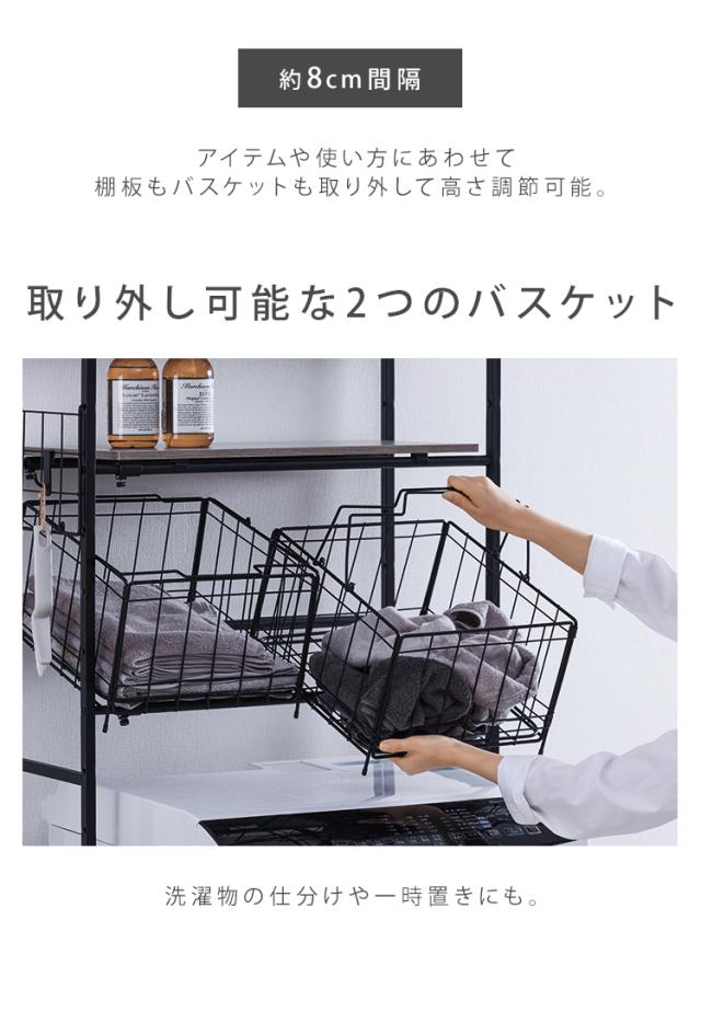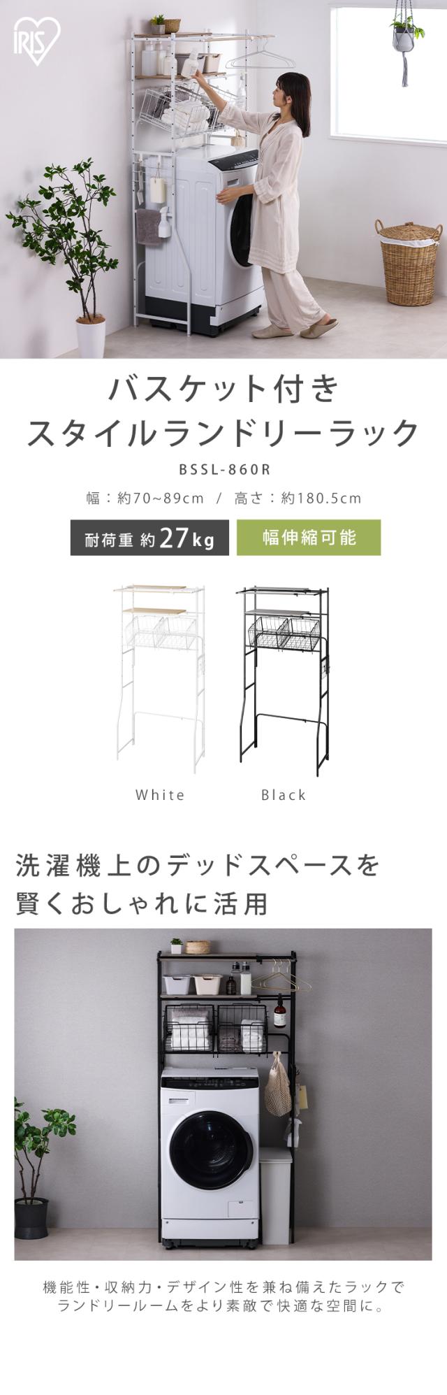 バスケット付き伸縮スタイルランドリーラック BSSL-860R ランドリーラック バスケット付 洗濯 洗濯機ラック 洗濯ラック 洗濯機 ラック laundry ランドリー 洗濯物 ランドリー収納 可動棚 収納 スリム 縦型 おしゃれ 一人暮らし