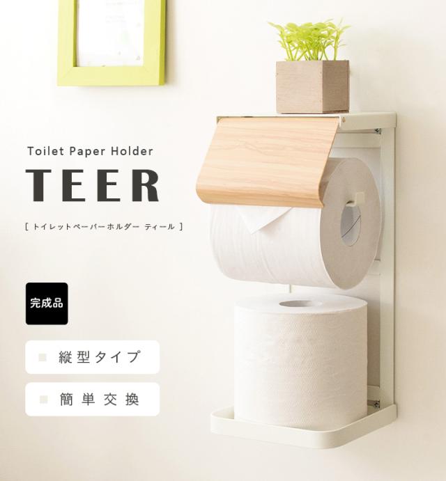 【完成品】トイレットペーパーホルダー TEER(ティール) TP-950M 2色対応 トイレットペーパー 縦型タイプ 収納 ストッカー トイレ 収納 棚 サニタリー トイレ収納 スチール 北欧 木製 スリム